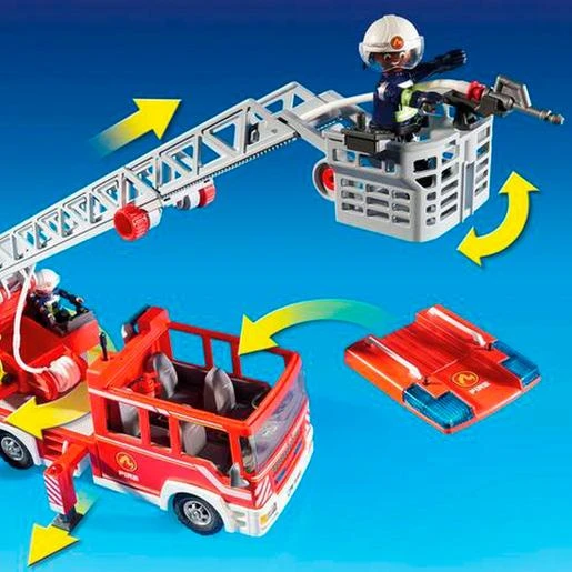 Playmobil – Camión de Bomberos con Escalera – 9463, un vehículo equipado con remolque y con espacio en la cabina para 4 figuras.