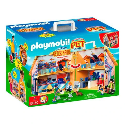 Playmobil – Clínica Veterinaria Maletín – 5870, una clínica veterinaria de Playmobil que incluye 4 figuras.