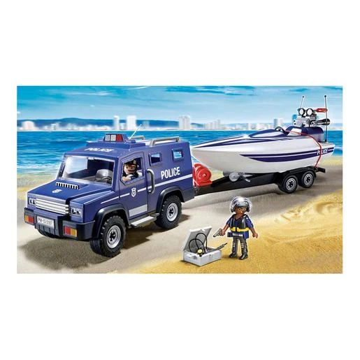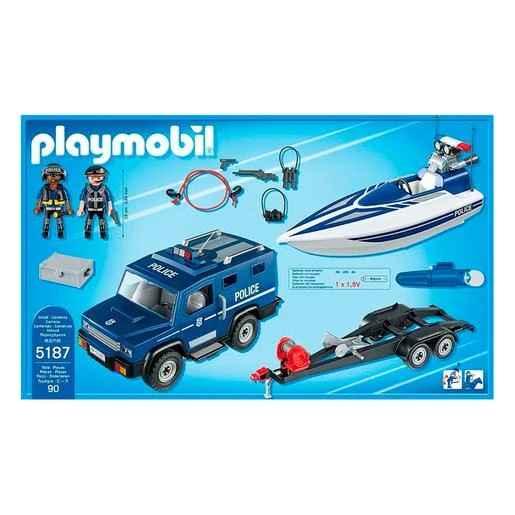 Playmobil – Coche de Policia con Lancha – 5187, un coche de policía Playmobil con remolque para transportar la lancha.