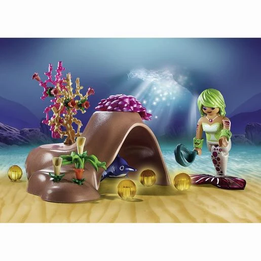 Concha con luz que cambia (se neceSítan pilas 3 x AAA) automáticamente cada 15 minutos. Con perlas luminiscentes para coleccionar y muchos otros accesorios. DimenSíones de la concha cerrada: 17 x 12 x 7cm (LxPxA)