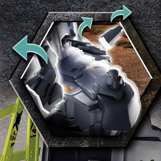 - Erupción de dinosaurios con sonido, rocas energéticas con efecto luminoso y rocas con vibración.