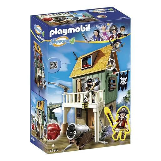 Playmobil – Fuerte Pirata Camuflado con Ruby – 4796, un set de 94 piezas de las cuales el fuerte pirata perteneciente a la Isla Gunpowder, una figura pirata, a Ruby (la pirata de la serie Super 4) y una gran diversidad de accesorios y complementos.