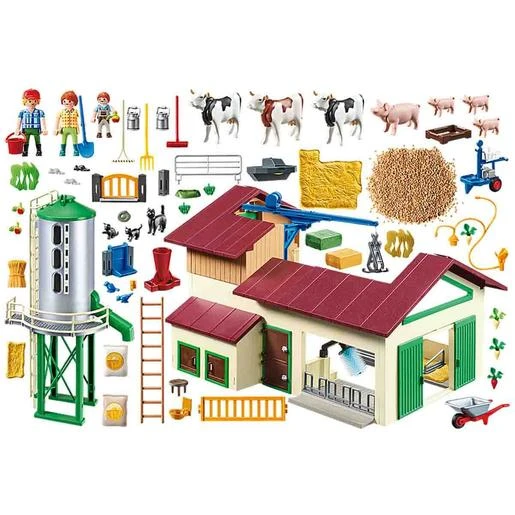 Playmobil – Granja con Silo – 70132, una granja con gran espacio para los animales y un silo que se puede rellenar y vaciar.