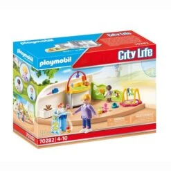 Con cambiador, trona, manta de juegos, juguetes y muchos otros accesorios. Se puede combinar con la Guardería Arcoíris (70280 – se vende por separado). Medidas: 22 x 18 x 7.5 cm (LxPxA).