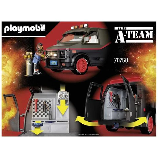 Playmobil – La furgoneta del Equipo A – 70750. El vehículo del Equipo A con todo el equipamiento interior y los personajes de Hannibal, M.A., Fénix y Murdock.