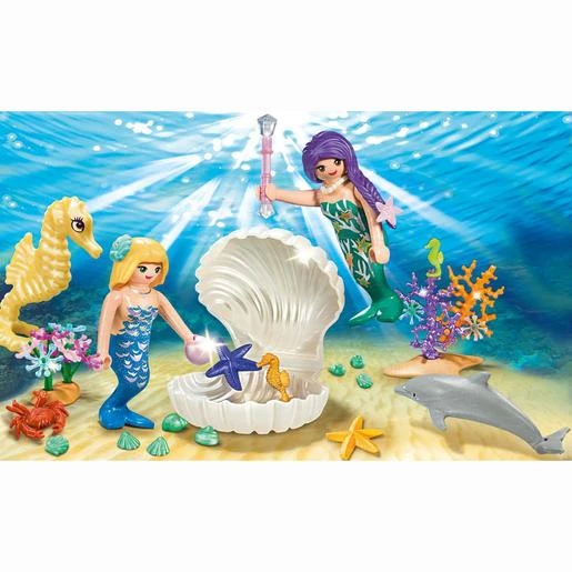 Incluye dos sirenas, caballito de mar y concha grande que puedes utilizar para guardar los más preciados tesoros. Es maletín y lo puedes guardar todo en su interior.