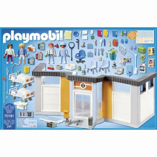 El quirófano está equipado con un monitor iluminado (neceSíta 1 pila x AAA), una luz giratoria y muchos otros accesorios. Hay una habitación para dos pacientes. Medidas: 60 x 31 x 20 cm (LxPxA).