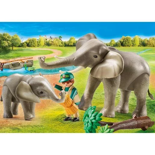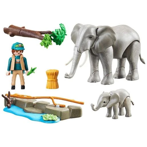 Playmobil – Recinto exterior de elefantes – 70324, un pack de dos elefantes Playmobil, el cuidador y todo lo necesario para que estos dos grandes animales estén felices.