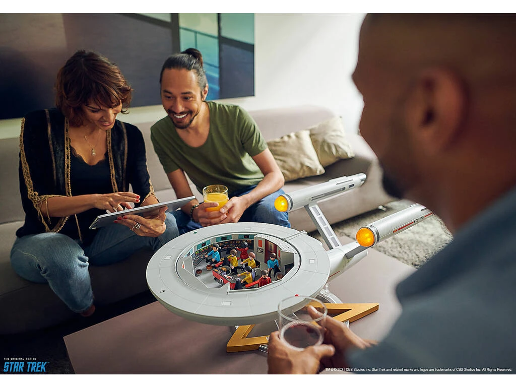 Hazte con esta increíble versión de la icónica nave Enterprise de Star Trek, inspirada en la versión de la serie original, llena de zonas de juego y detalles que la convierten en una pieza de exposición única para los fans. Encuentra un lugar especial donde exponer esta genialidad y disfruta de todos sus espacios, figuras con el uniformde de la Flota Estelar y todos los accesorios incluidos.