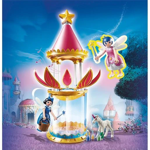 Playmobil – Torre Flor Mágica con Caja Musical – 6688, un set de 45 piezas, de las cuáles 2 hadas (una de ellas es el hada Twinkle de Super 4), 1 unicornio, la torre flor mágica y accesorios.